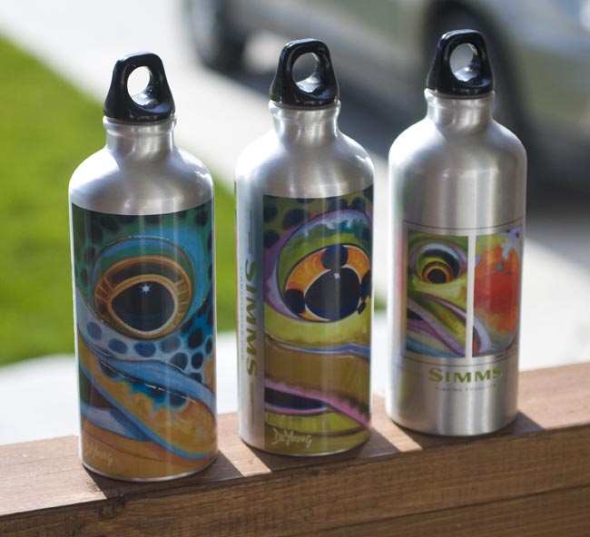 Not only has he managed to get his art on Abel reels as already mentioned here, but now you will be able to buy Simms water bottles and T-shirts with Derek's vivid and beautiful images on them.