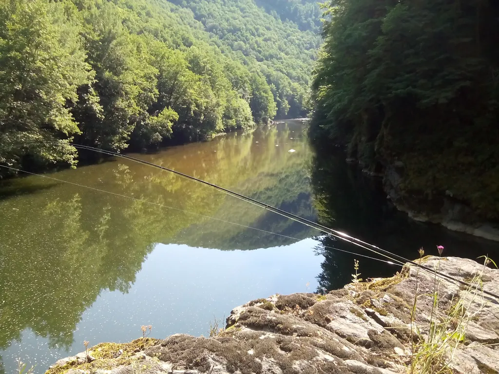 A typical hill area river bank where classical single hand casting is difficult to perform