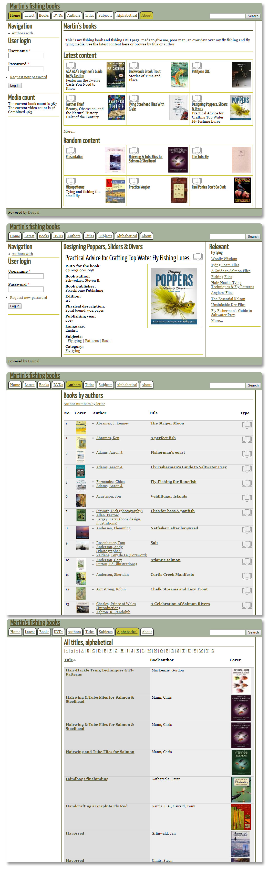 Screen dumps from my little book register, which does a nice job of organizing my fly fishing and fly tying books.