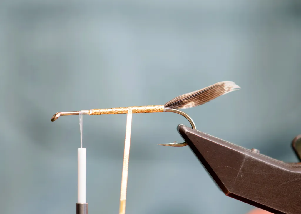 When you reach the tail, turn back and wrap towards the front of the thread base
