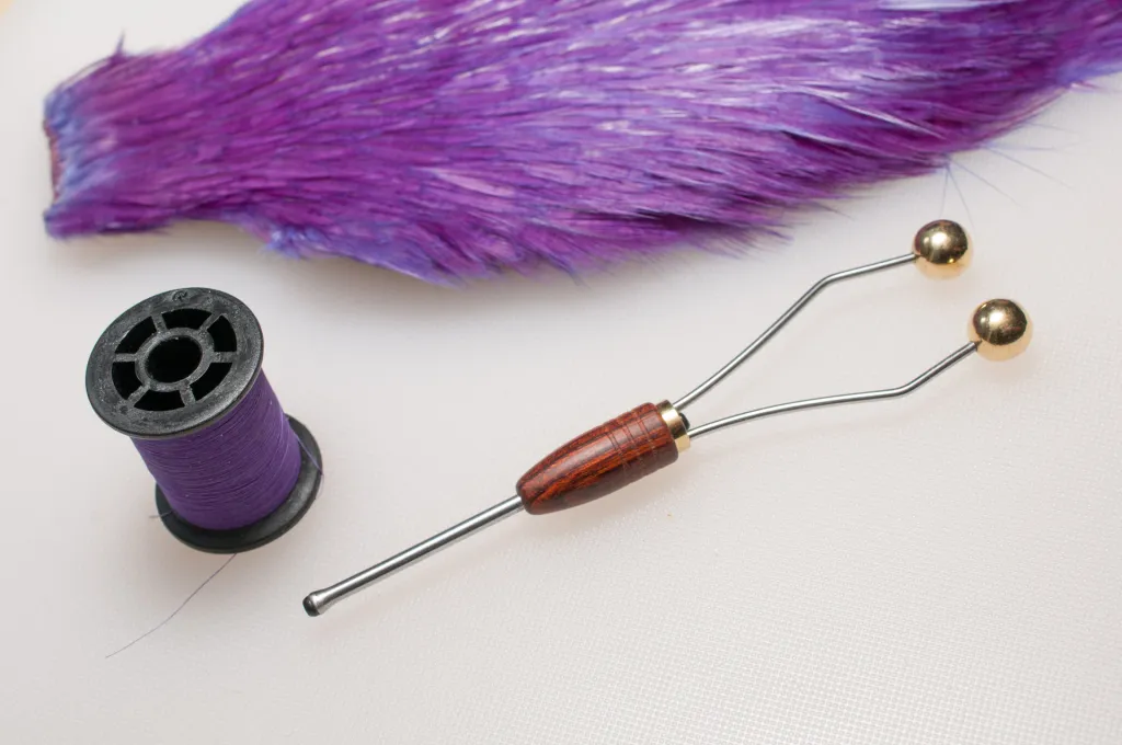 A standard sized bobbin holder with brass hubs and a beautiful wooden handle