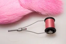 When using normal bobbin holders, the tyer manually winds the surplus thread onto the spool while keeping tension on the materials and the thread. The retracting tools have a built-in spring mechanism that makes them pick up and release thread as you move the bobbin holder closer to and away from the fly.