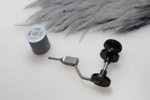 The TMC Adjustable Magnetic Bobbin controls thread tension with magnetism, which is a novelty ... that comes at a price. These are announced at 6,600 Yen, which translates into more than 60 US$. And that's before they have been exported from Japan. As with most Tiemco products they are most likely good quality and feature such design details as vertically adjustable ceramic tube, thread keeper, and self-standing design. As it can be seen from the video below, the construction is pretty complex, and adjustment takes several steps.