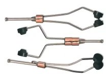 Some wire bobbin holders are symmetrical on one axis but curved on the other, mainly to offer a better fit in the hand. The curved models are mainly standard wishbone bobbin holders that have been slightly bent in the legs, and if you aren't intimidated by the thought, you can easily convert your own straight Y-shaped wire bobbin holder to a curved ditto.