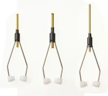 These Danish produced bobbin holders are visually very different from most bobbin holders and also use a unique way of tightening the legs to hold the thread.
