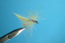 Dutch tier Hans van Klinken (originator of the Klinkhamer Special) turned CDC upright with his Once & Away pattern in 1988. The Once & Away has since spawned a host of patterns, generally referred to as Shuttlecock flies, which continue to be popular in Western Europe, especially with stillwater anglers. Shuttlecock designs are excellent ascending midge patterns for lakes and tailwaters.